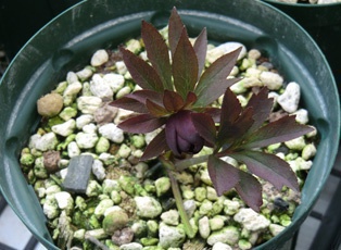 2011年5月に種を採取し10月まで適正管理後、ポットに種まき。2012年3月に発芽し、2012年4月に3号ポットにポットあげした1800株の「クリロー」は、2012年の夏を越えることができなかったり、冬に枯れてしまったりして、2013年4月には約1200株になりました。そして、2013年5月に専用用土で5号ロングポットに植え替え、およそ1年が過ぎた2014年4月現在、5号ポット苗はおよそ1000株になってしまいました。しかし、生き残った株は、この生育環境に適応したものばかりであり、ハイブリッド種の発芽から開花までの標準的な育成期間である3年を迎える来年2015年の2月から3月にかけて開花すると思います。(今年一部の株は開花しましたが、早すぎます。)あと1年間、高温多湿、強風に耐えた株の成長を見守りたいと思います。目標としていた1000株が、来年2015年の2月に開花するのを楽しみにしています。「クリスマスローズの魅力2015」で、1年後の様子をご報告しますので覗いてください。ではまた。