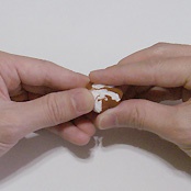 体に手を結合し爪楊枝の先で押さえる