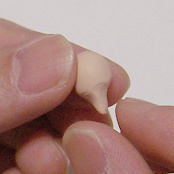 体をくぼみに入れ、爪楊枝の先で押さえる