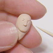鼻は、小さな ねんど辺を爪楊枝の先で押しながらつけます。爪楊枝をコロコロすると、表面がなめらかになります。