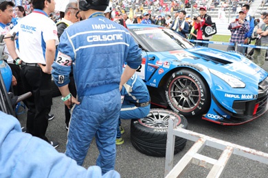 ピットウォークも終り、FIA-F4の決勝後、いよいよスーパーGT予選が始まります。屋外テラス席の真下からGTマシンが出て行きます。予選はノックアウト方式で、詳しくは以前の「AUT FUN」を参考にして下さい。