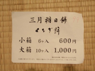 伊勢には、「朔日参り」と言って、毎月一日に無事にひと月が過ごせたことと、新しい月も無事に過ごせるようお参りする風習があり、その参拝客を歓迎する意味で、伊勢と言えば赤福餅で有名な(株)赤福が始めた、二月から十二月の、一日のみに販売する季節の餅菓子です。